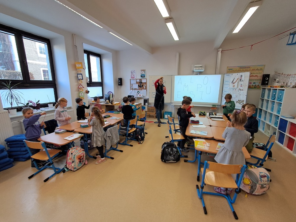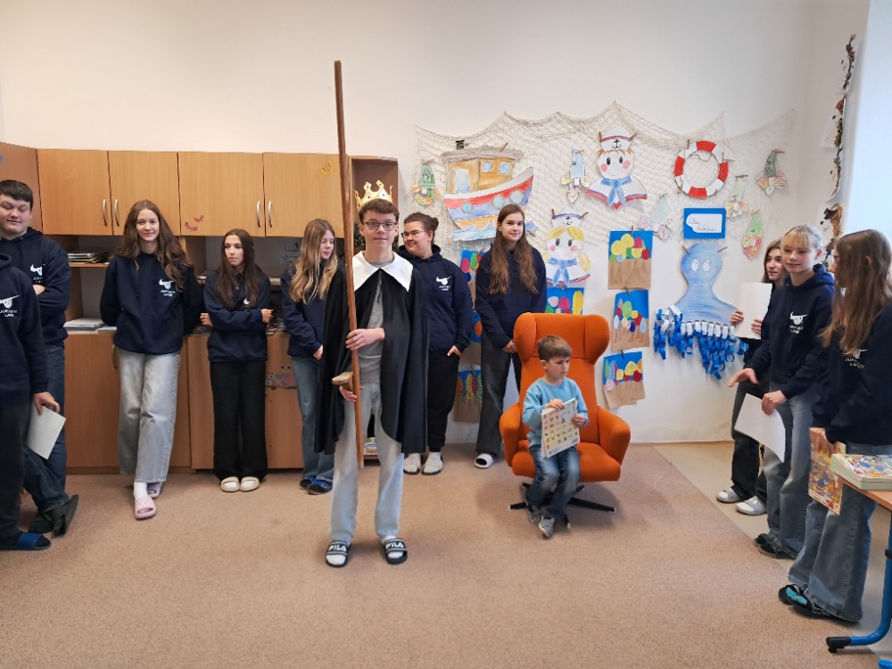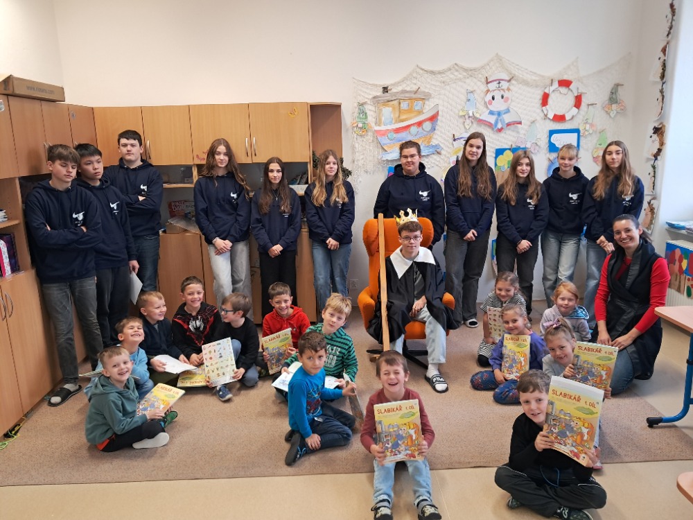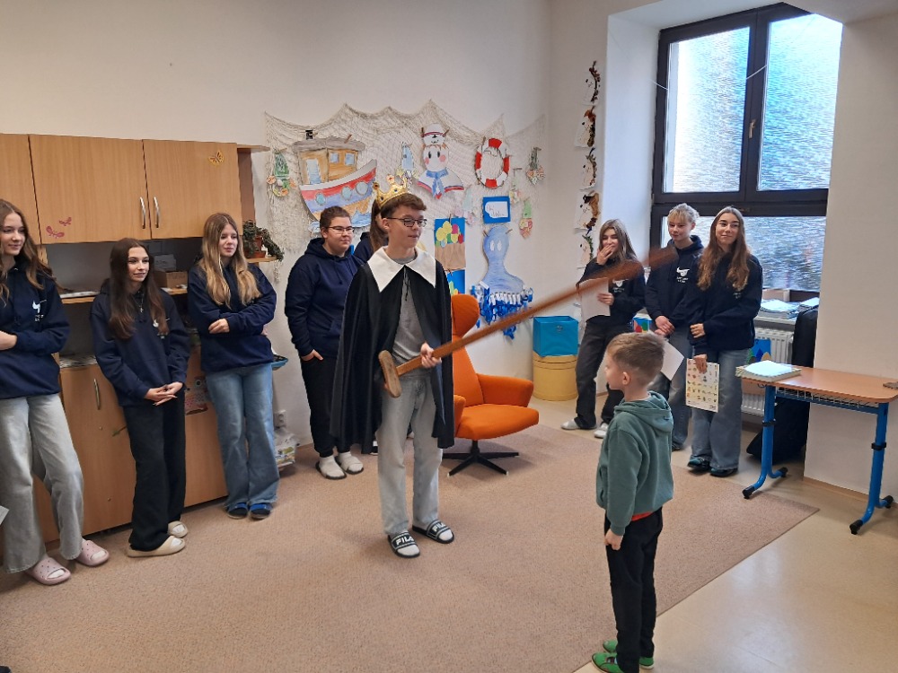 V úterý 18. 11. 2025 předávala devátá třída 1. díl slabikáře našim prvňáčkům. A aby vše působilo slavnostně, nejprve nám prvňáci přeříkali básničky, které se už od září naučili a potom jsme je pasovali na čtenáře. Obdrželi slabikář a pamětní list na tento milý okamžik. Bylo krásné pozorovat, jak si s chutí otvírali slabikáře a hned si četli slova a věty! Jen tak dále…