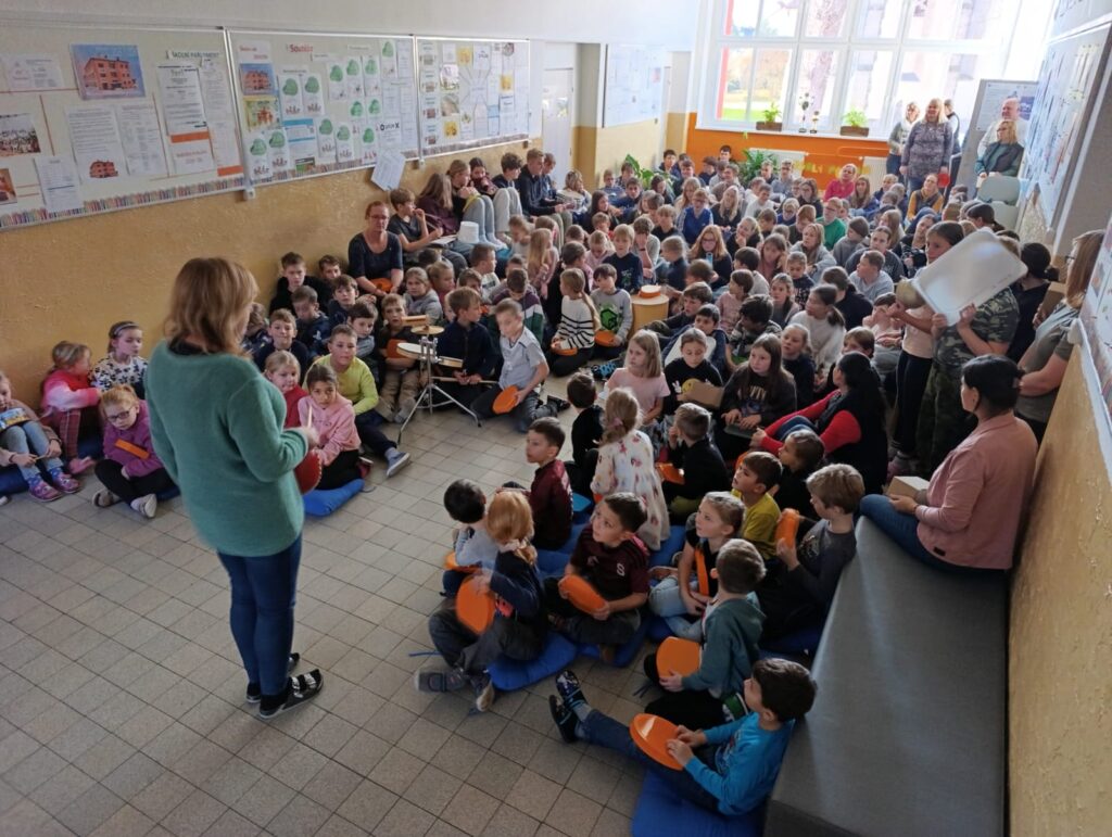 Ve středu 19.11. 2025 jsme se připojili v naší škole k iniciativě Bubnovačka. Ale neznamená to, že jsme ten den jen bubnovali, jak by se zdálo. Během dvou vyučovacích hodin si žáci s třídními učitelkami ve třídách povídali o tom, co je násilí a jak se projevuje. Vznikal prostor pro otevřenou diskusi o tom, že násilí (fyzické, psychické, sexuální, ale i digitální) není v pořádku a že děti mají právo na ochranu. Žáci se také dozvěděli, kde hledat pomoc – co by měli dělat, pokud by jim někdo ubližoval anebo ubližoval někdo jejich kamarádovi. A právě z toho důvodu, že se musí ozvat a nesmí být v takových případech potichu, jsme potom všichni společně symbolicky bubnovali.