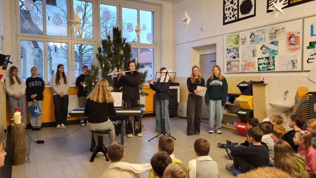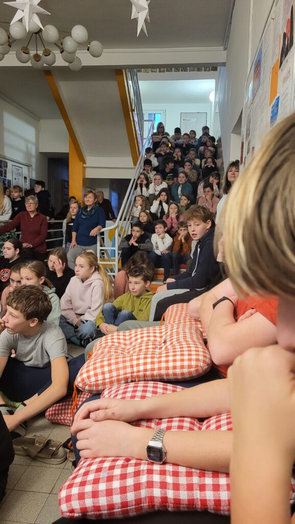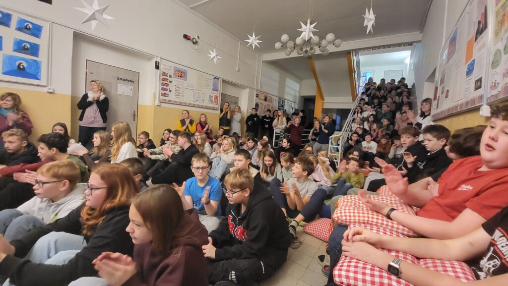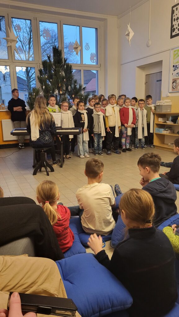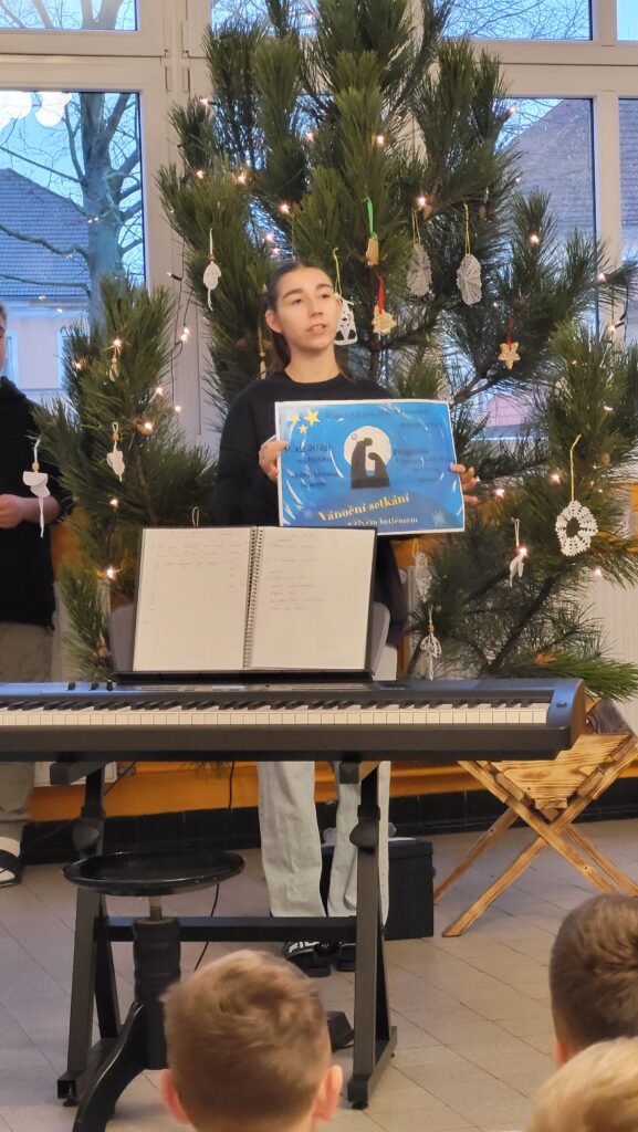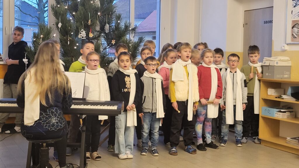 Dnes 8. prosince jsme se opět společně sešli na chodbě školy, abychom si zpříjemnili adventní čas zpěvem tradičních koled pod vedením p. učitelky Sychrové. Atmosféru obohatilo vydařené hudební vystoupení žákyň 2. stupně, které svým talentem potěšily všechny přítomné. Společně jsme také rozsvítili druhou svíčku na adventním věnci, čímž jsme symbolicky přivítali druhý adventní týden.