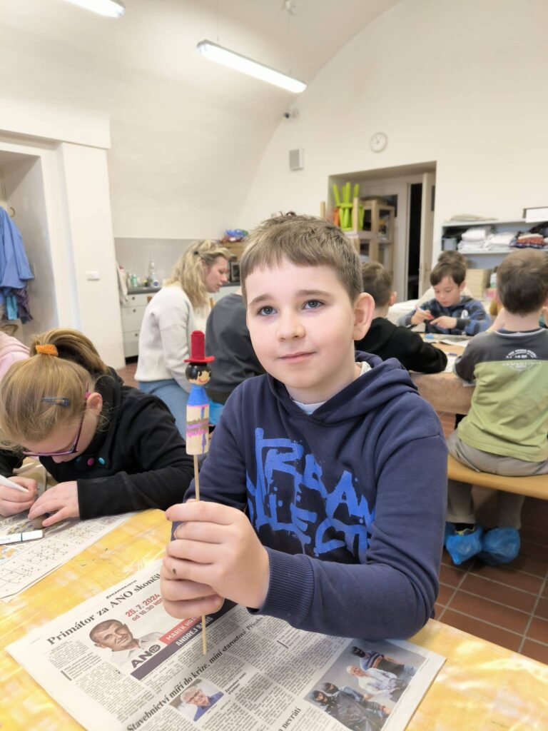 Součástí exkurze byla praktická část, kde si děti vyzkoušely práci s materiálem a vyrobily si vlastní figurku.
