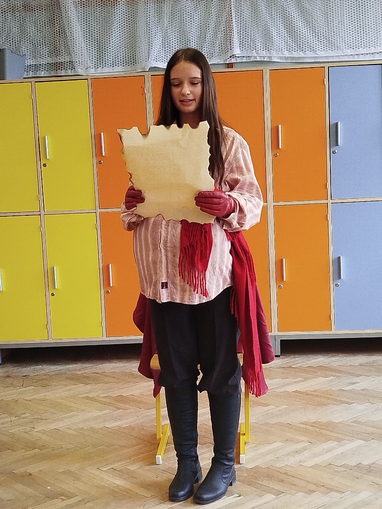 V rámci tandemové výuky (D+VV) jsme se s 8. A a 8. B pustili do dramatizace historické události. Nejprve jsme probírali selská povstání a bouře za Leopolda I., poté jsme se blíže seznámili s chodským povstáním, které vypuklo roku 1692 a jeho vůdcem byl Jan Sladký Kozina. Žáci se rozdělili do skupin a vytvořili si vlastní scénář, v kterém se snažili tento příběh zachytit. Tvorba kulis a vlastní nácvik probíhal o výtvarné výchově. Následující hodinu dějepisu nám jednotlivé skupiny předvedly svá vystoupení. Každé zpracování bylo originální a doufejme, že se všem dostalo pod kůži…