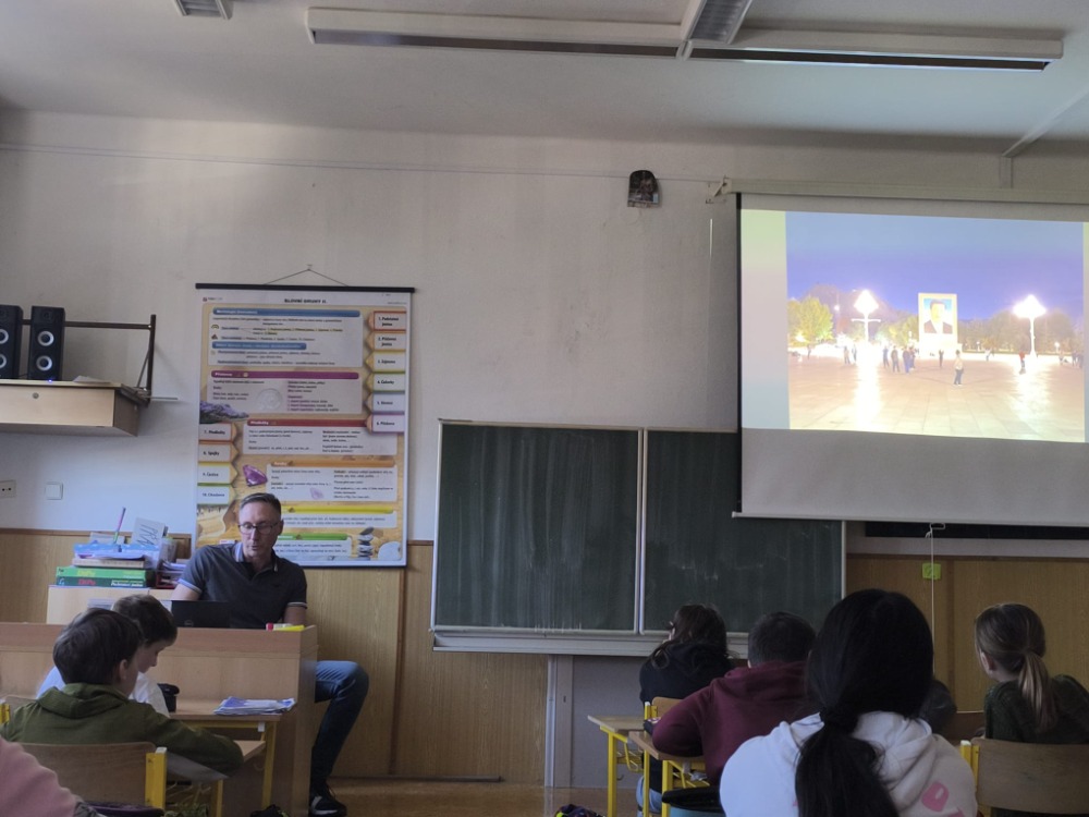 Ve středu 3. 3. 2026 proběhla v 6. třídě dvouhodinová beseda s cestovatelem Michalem Bártou, který šesťákům vyprávěl o současné Číně, neboť tam před několika měsíci tři týdny cestoval. Probíráme v hodinách dějepisu starověkou Čínu, proto bylo velice zajímavé propojení starověké historie této země se současným pohledem. Beseda byla velice zajímavá, žáci se ptali na nejrůznější otázky a myslím, že to bylo pro nás pro všechny velice obohacující a inspirující! Moc děkujeme paní asistence Janě Vosmekové, která nám toto setkání domluvila.