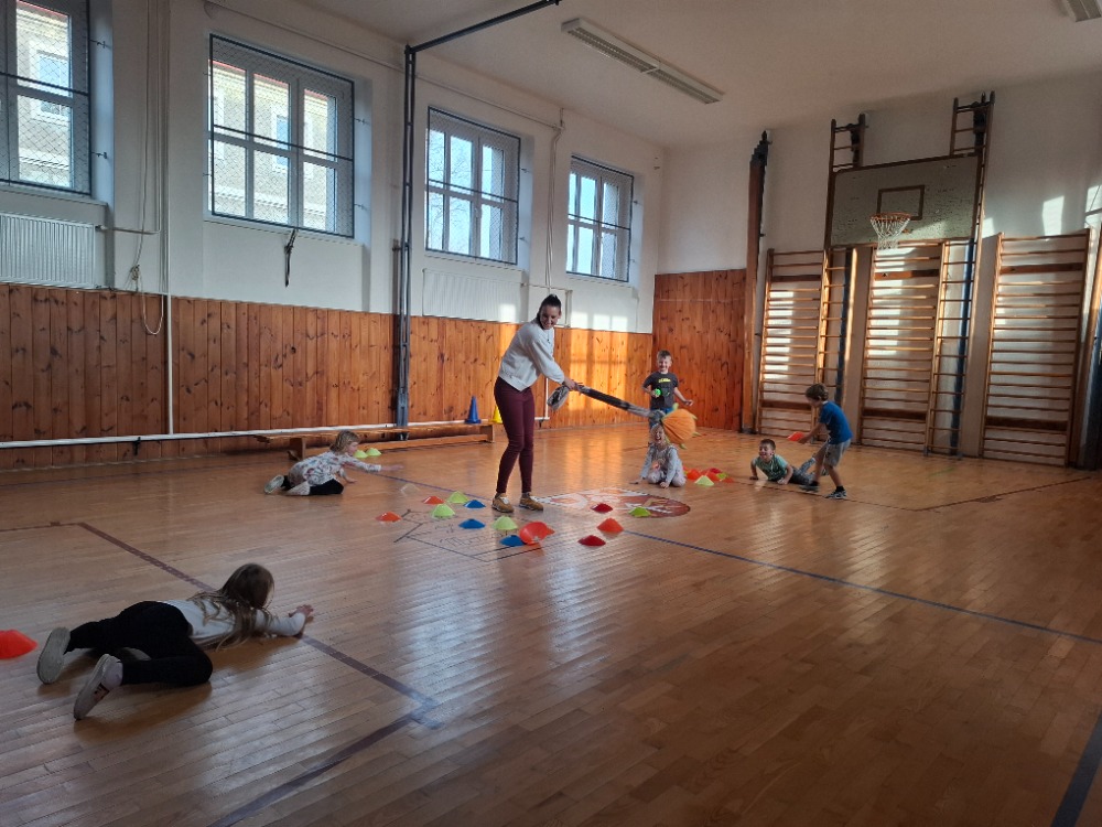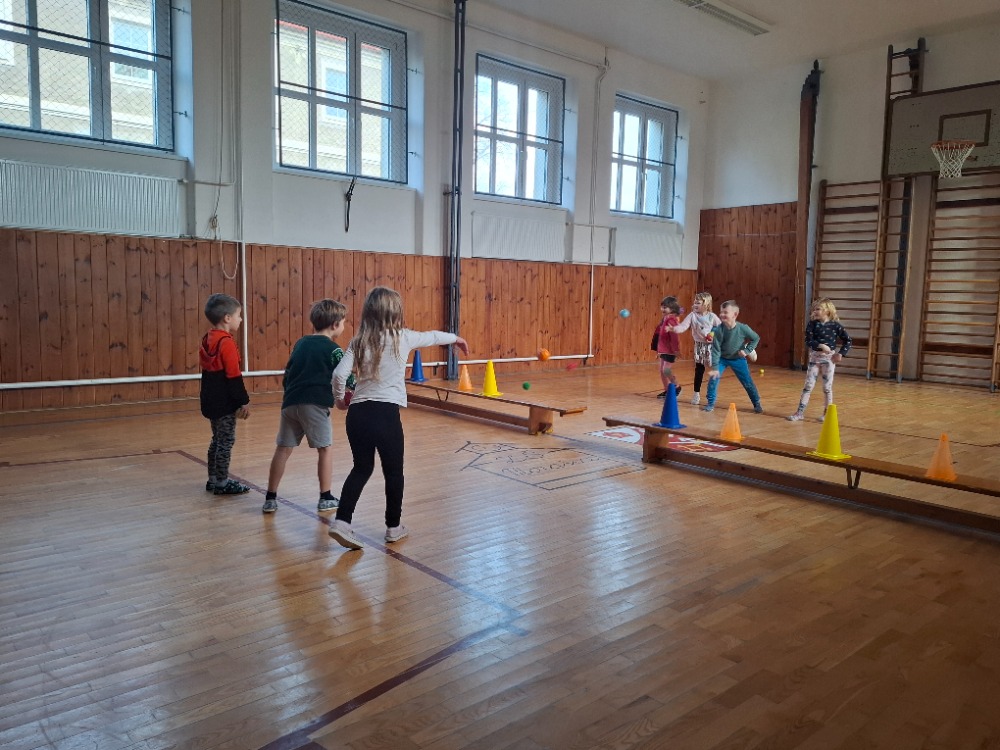 Společný čas jsme strávili v tělocvičně ZŠ, kde na děti čekala spousta týmových úkolů. Shazovaly kužely, společně hledaly cestu na druhý konec tělocvičny a zjistily, že bez spolupráce to nejde. Na závěr jsme si popřáli krásné vánoční svátky a domluvili se na další společné vycházce prvňáčků a předškoláků. 🎄✨