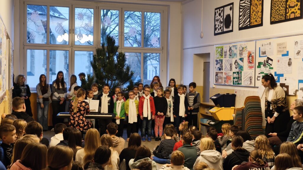 Adventní zamyšlení, zpěv koled, rozsvícený stromeček a záře svíčky vytvořily příjemnou atmosféru plnou úsměvů a radostného očekávání Vánoc.“
