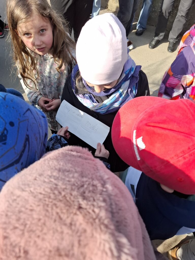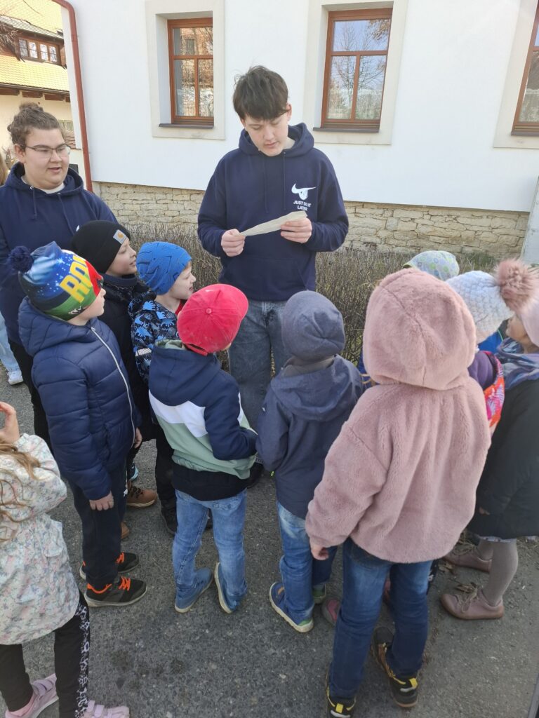 Dnes 9. 3. si pro naše prvňáčky připravili deváťáci překvapení v podobě šipkované. Po cestě děti hledaly ukryté zprávy a plnily různé úkoly. Díky jejich nápaditosti jsme si užili krásnou procházku i napínavé pátrání.