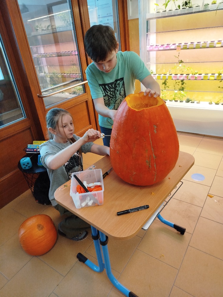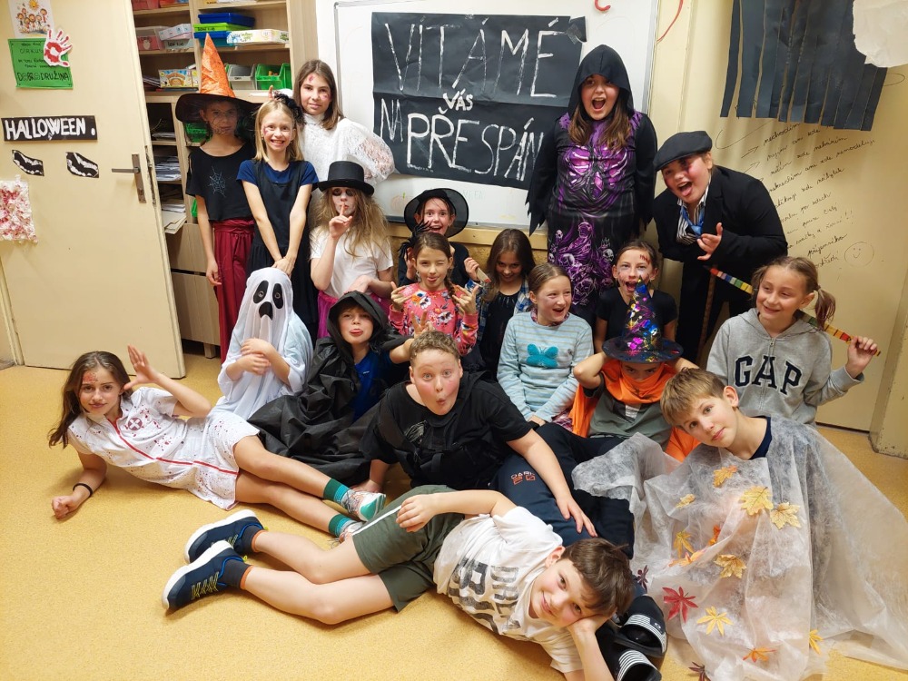 Byla jsem překvapená, kolik fantazie mají žáci 4. a 5. třídy. V pátek 7. listopadu se totiž ve škole konala akce „Strašidelné spaní“. Čtvrťáci a páťáci už skoro měsíc předem akci připravovali. Plánovali program, výzdobu, občerstvení… Celé páteční odpoledne pak dlabali strašidelné dýně, zdobili a uklízeli klub, a hlavně připravovali palačinkové pavučinky, netopýří bábovku, párkové mumie… a pak v podvečer to začalo. Beáta všechny uvítala a představila Honzu se strašidelným tanečním vystoupením. Následovalo protažení se v tělocvičně a večeře. Neuvěřili byste kolik nápaditých strašidelných kostýmů a večeří se sešlo u společného stolu. Čekala nás strašidelná úkolovka po škole, noční cesta po Morašicích, diskotéka, módní přehlídka pyžam a spacích miláčků. Byla to sice krátká, ale příjemná noc.