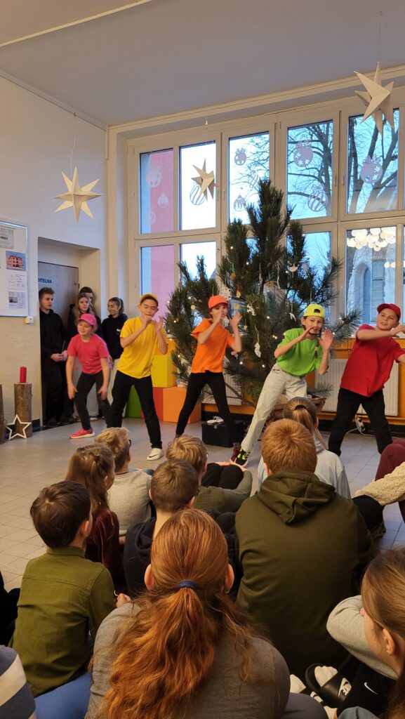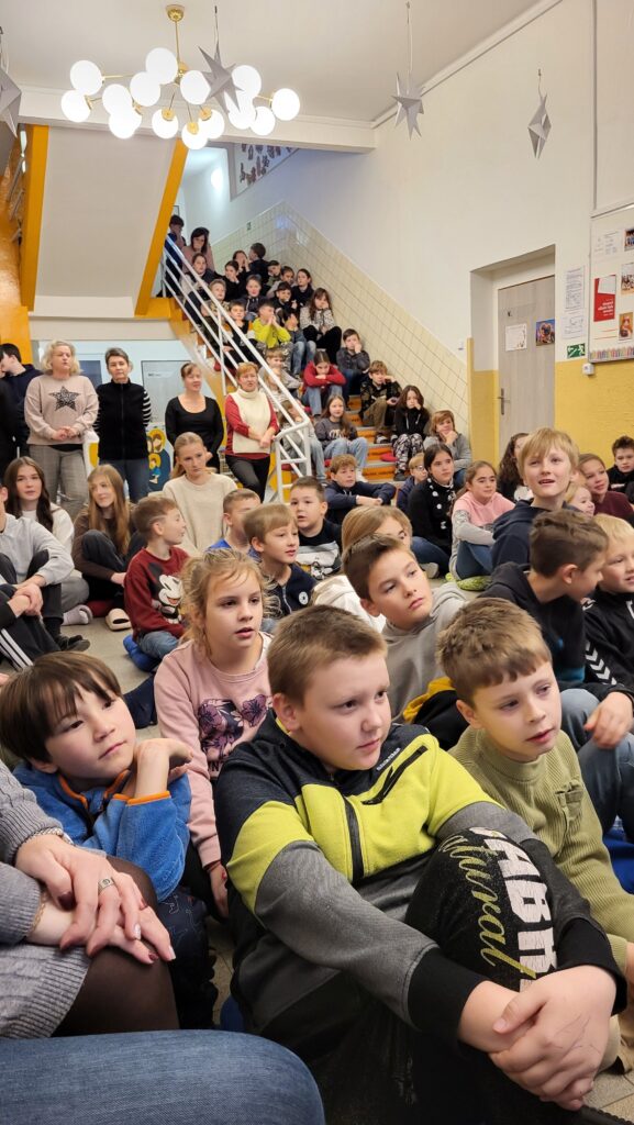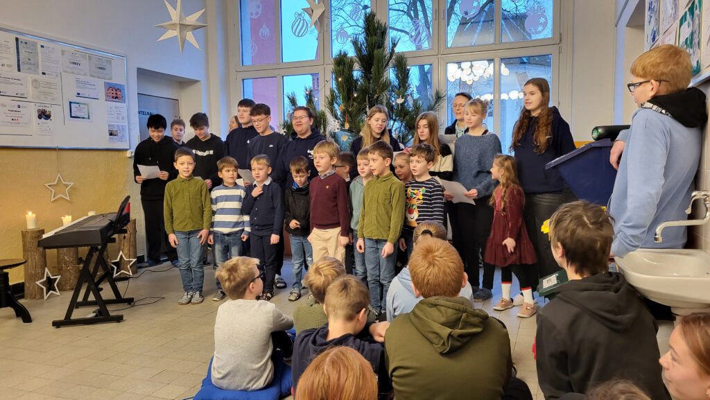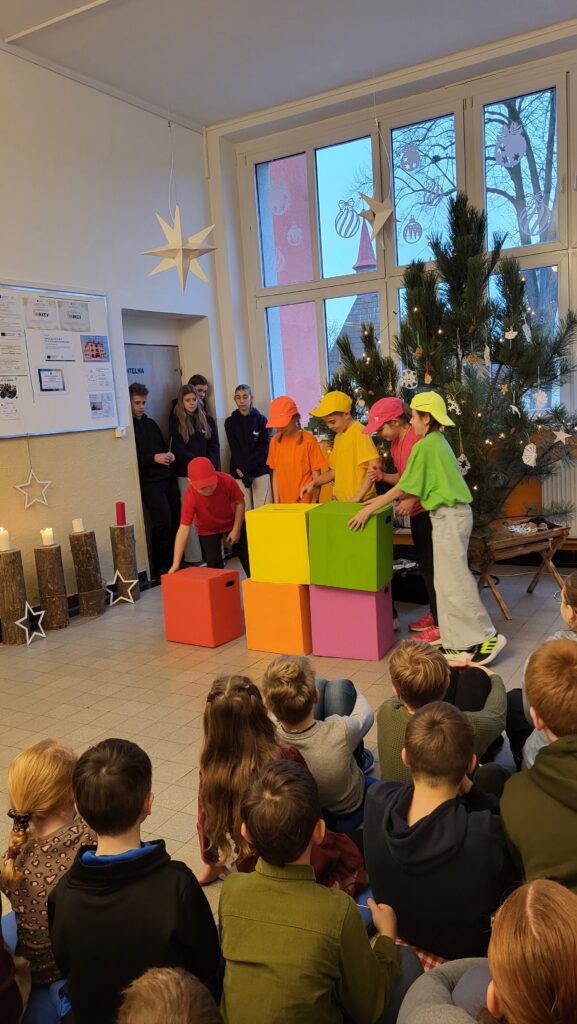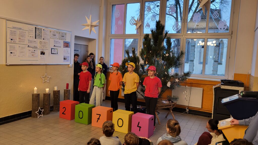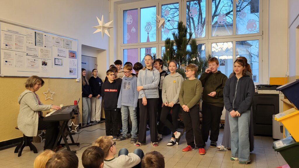 - Prvňáčci spolu s deváťáky zazpívali krásnou vánoční píseň, která spojila nejmladší i nejstarší žáky.