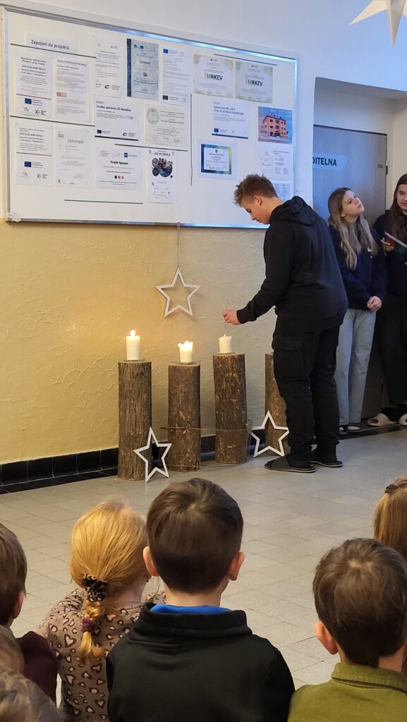 Zapálení třetí adventní svíčky na chodbě školy – 15.12.